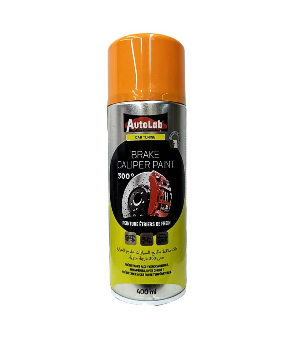 Peinture étudiée pour peindre et personnaliser les étriers de frein afin de mettre en évidence les plaquettes de frein dans les couleurs jaune